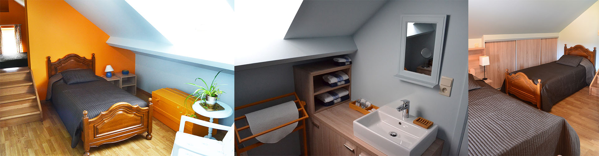 Dieses Zimmer mit eigenem Bad verfügt über ein Doppel- und ein Einzelbett. Außerdem gehört hierzu noch ein Vorraum, der mit einem zweiten Einzelbett ausgestattet ist.